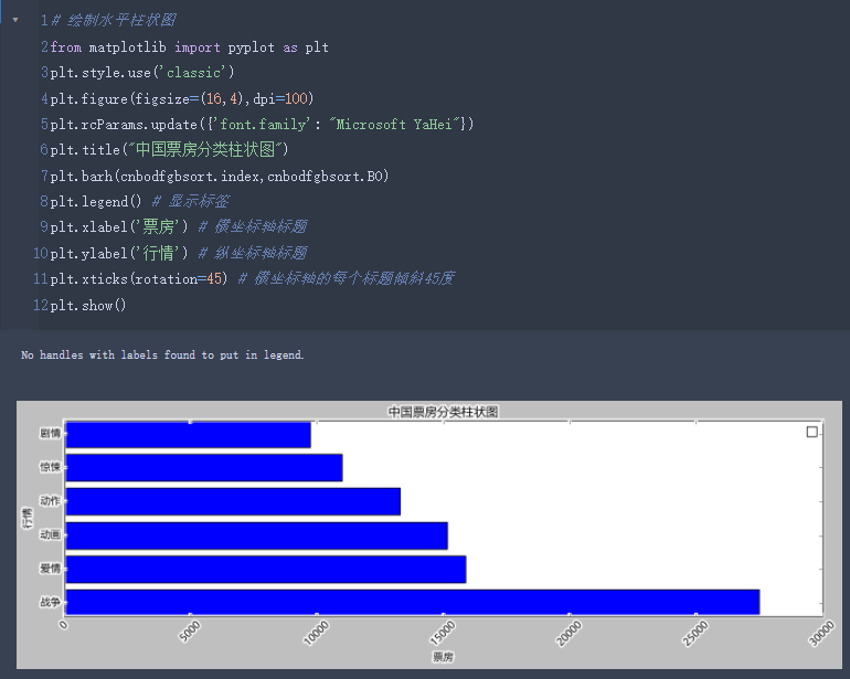 plt.ylabel('电影类型') # 纵坐标轴标题