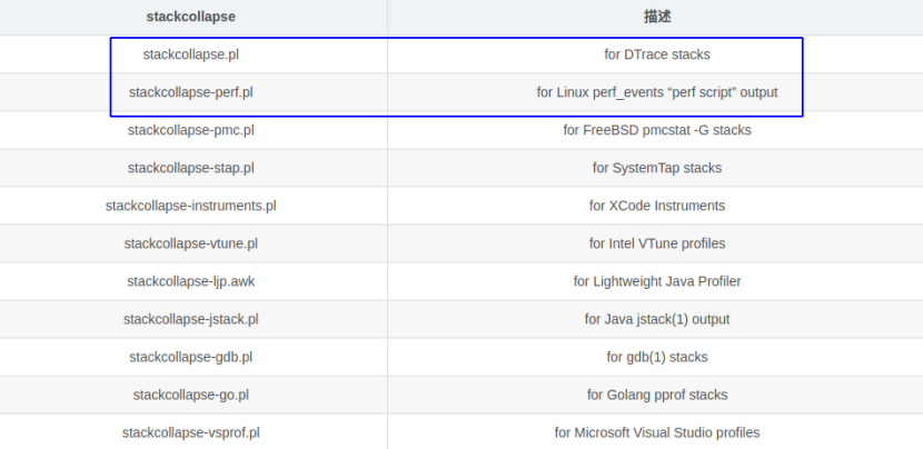 - 折叠堆栈: 对捕获的堆栈信息进行分析组合, 将重复的堆栈累计在一起, 从而体现出负载和关键路径, 由FlameGraph的stackcollapse程序生成, 注意程序路径