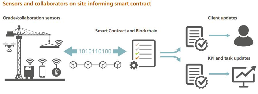 这种方式下,所有数据和信息以及启动的交易都会被记录在区块链上,整个项目系统对于协作参与者来说都是透明和可追踪的。 目前的关键挑战是,创造一个像区块链本身一样防篡改的系统,否则如果数据损坏,就会导致决策不准确。随着物联网的到来,这种相互连接的传感器可以作为智能合约的封闭数据源,消除潜在的人为错误。