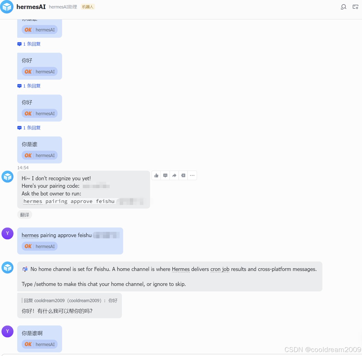 重点查看错误信息。 结语通过本文的讲解,你已经掌握了从部署 Hermes Agent 到接入飞书机器人的完整流程。这套方案的核心优势在于简单、高效、可扩展,非常适合个人开发者和企业内部使用。 如果你希望进一步提升系统能力,可以尝试引入 RAG、工具调用、甚至多 Agent 协作,让你的 AI 助手真正成为生产力工具。 |