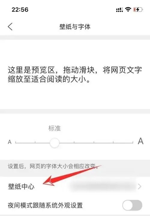 2.在壁纸与字体设置中,选择并点击【壁纸中心】,进一步浏览壁纸选项。
