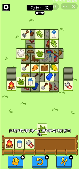4、如上图我这把遇到的第一个障碍就是这两棵白菜,这两棵白菜不消除我是不可能完成关卡的,因此我们只能先消除非中心区的牌,找到白菜后做下一步动作。