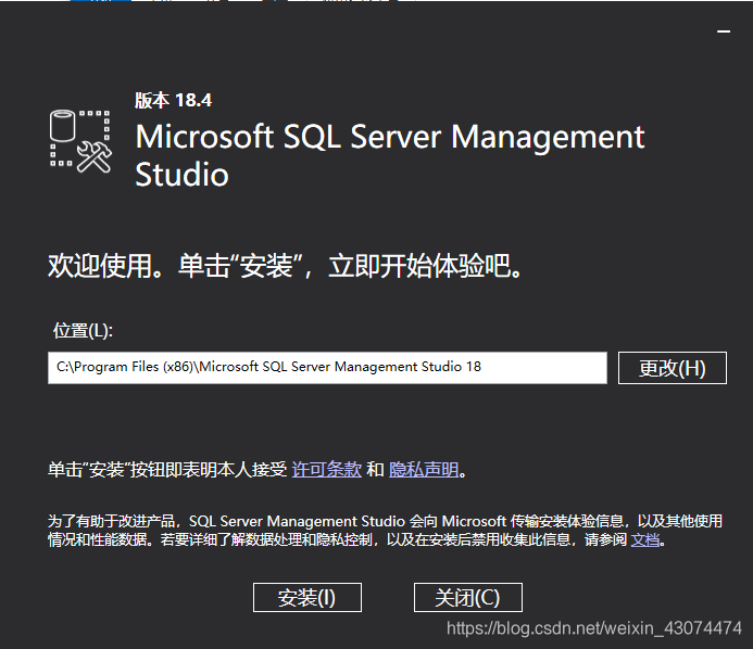 2.将下载的SSMS-Setup-CHS双击打开,如下图所示,选好安装位置之后,点击安装即可