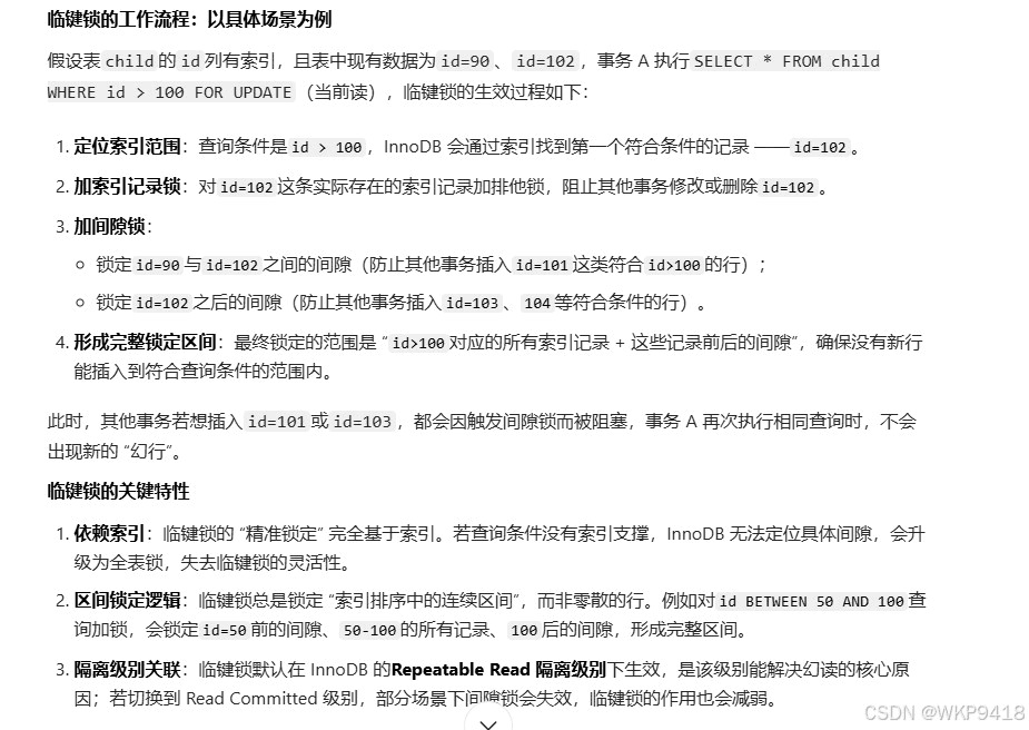需要注意的是,mysql添加了next-key临键锁(行锁+间隙锁)来解决了幻读。