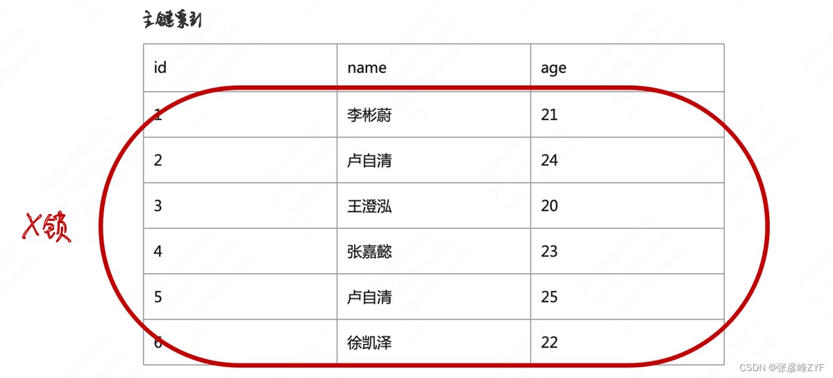 场景三:delete from user where age=20 不走索引,全表扫描,会对所有记录加锁
