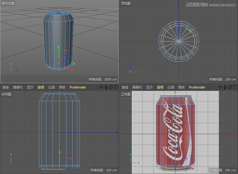 一、制作瓶身 1.在正视图模式下,按【shift+v】打开视图设置,在背景窗口下点击图像,将素材“易拉罐”置入正视图中作为参考图。