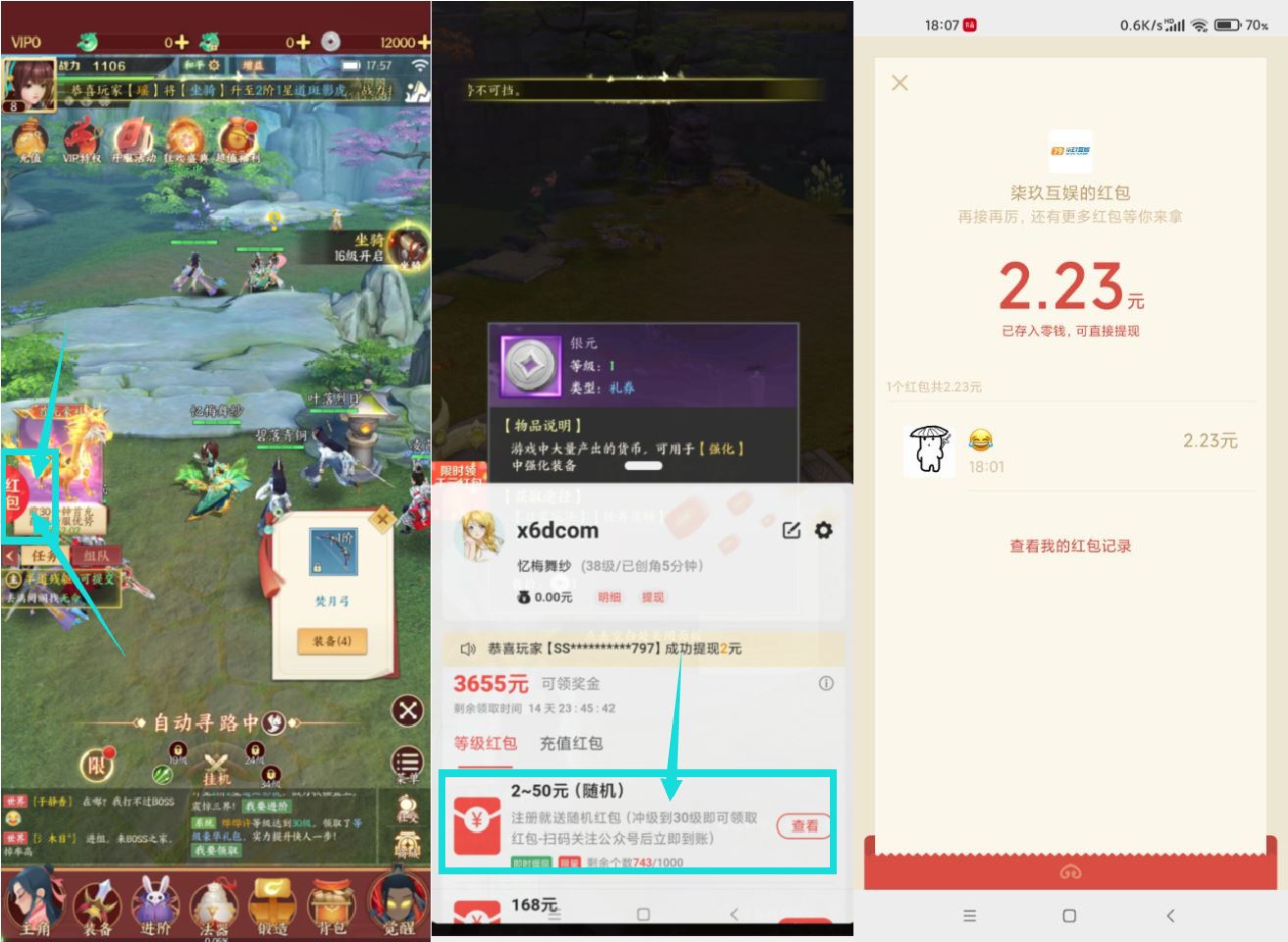 只领注册红包,其它的无视 1、打开下载游戏180M-登录后提示实名叉掉-跟着指引走-玩3分钟到30级-到了级数 2、点左侧边红包标志-下拉页面