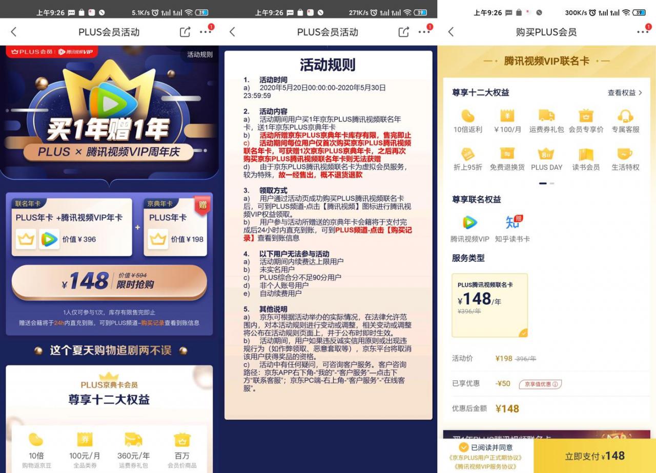一年一度的京东Plus会员来了,开通还可以免费领1年知乎会员和京东读书会员,也就是148开了2年京东会员+1年腾讯视频会员+1年知乎会员+京东读书会员 活动时间:2020.5.20~5.30 |