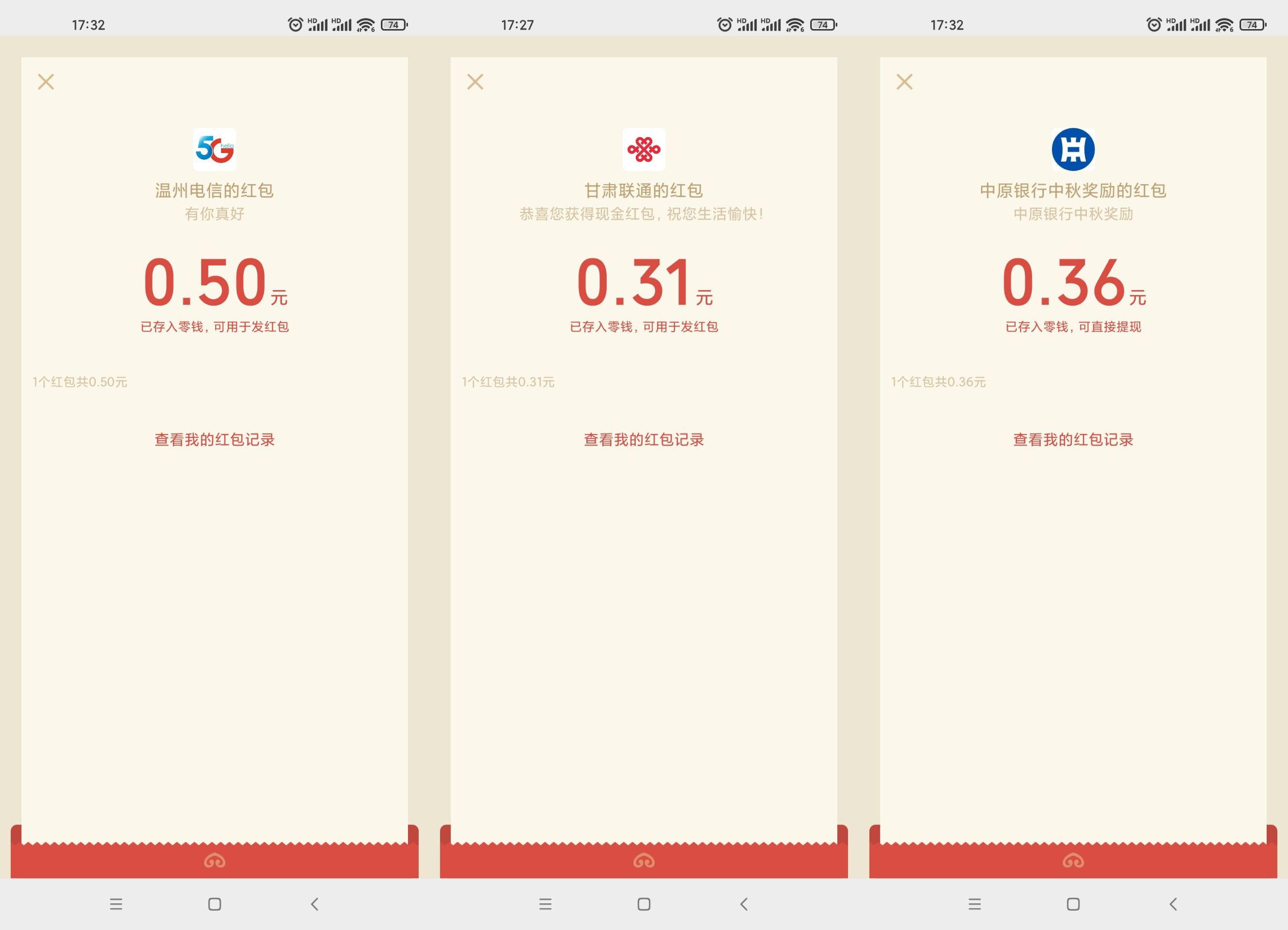 最新分享6个活动抽1~3元微信红包秒到