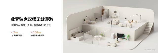 在子路由与手机等终端传输过程,华为凌霄子母路由 Q7 网线版搭载最新Wi-Fi 7技术,支持双频聚合技术,实现全屋Wi-Fi 7疾速体验。简单来说,传统路由器只能使用2.4 GHz(速率低,覆盖广)或 5 GHz(速率非常高,但覆盖范围差)其中的一个频段传输。而华为凌霄子母路由 Q7 网线版可以实现“2.4 GHz+5 GHz”两个频段同时连接终端并传输,自然网速更快、信号更稳。 传统的多路由组网方案,往往只根据信号强度粗暴切换,用户在不同房间移动、Wi-Fi热点切换时,容易出现网络暂时卡一下的情况。而华为凌霄子母路由 Q7 网线版采用业界独家的双频无缝漫游算法,在不同子路由间进行Wi-Fi切换时,设备会先断开其中一个频段,待连接到新的子路由以后,另一个频段才会开始切换。这确保了用户在家中移动过程中,网络始终连接顺畅,无论是直播、视频、游戏通通不再卡顿,在无缝漫游网络中,用户随意穿行,根本感觉不到网络之间进行的切换,实现真正的丝滑上网体验。