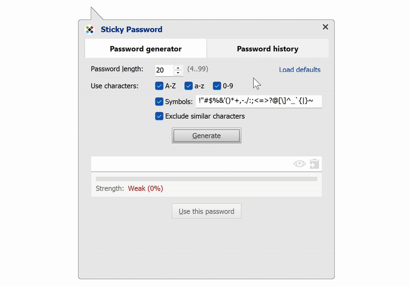 (二)强大的密码生成器 当你需要创建新密码时,Sticky Password 的强密码生成器会为你生成安全的密码,并存储在保险库中。它的仪表盘还能报告密码的强度和重复使用情况,确保你的密码始终保持高度安全性。