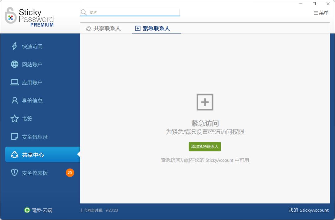 (七)紧急访问 Sticky Password 的紧急访问功能可以让你在紧急情况下,让一个你信任的人能够访问你的密码,确保你的数字遗产得到妥善保护。这一功能为用户提供了额外的安全保障,尤其是在不可预见的情况下。