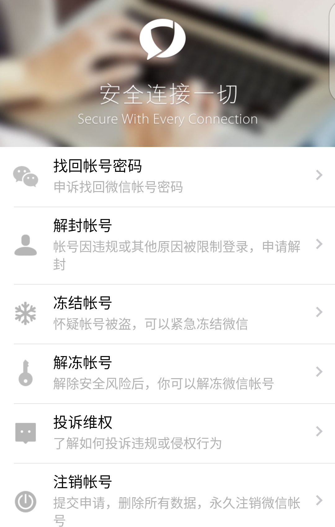 其中微信注销账户的入口:我→设置→帐号与安全→微信安全中心→注销帐号。