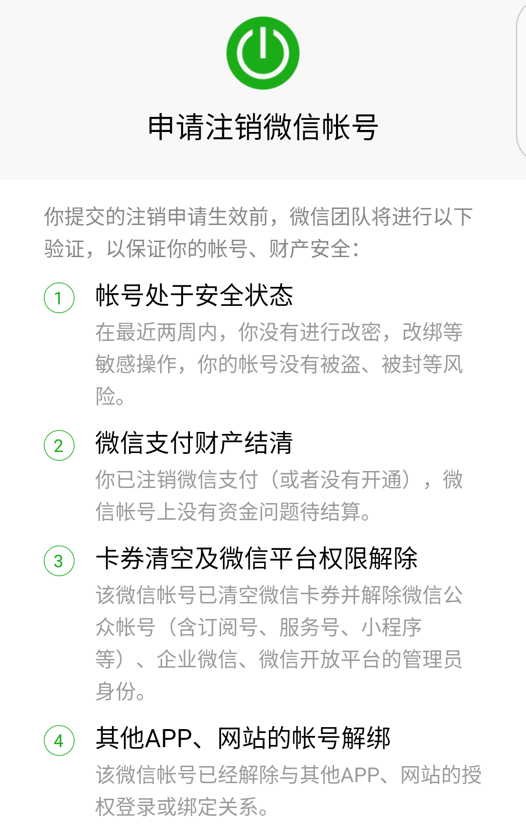 微信注销账号的要求共有4条,只有同时满足这4条要求的情况下,才能完成微信账号的注销。