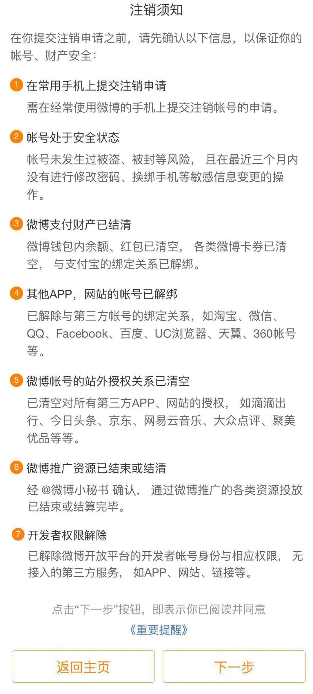 不过注销微博账户的要求却多到7条,同时达到这7点要求之后才有资格申请账户注销,而之后还要等待微博官方的审核。