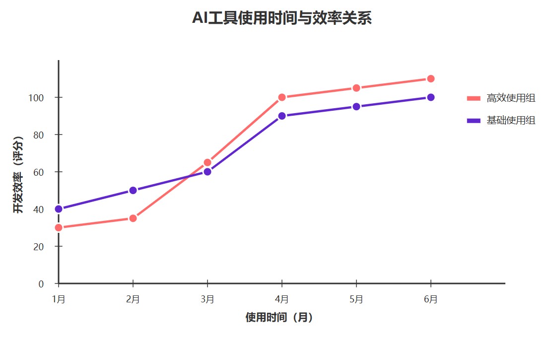 图2:开发效率提升趋势图 - XY图表展示AI工具学习曲线