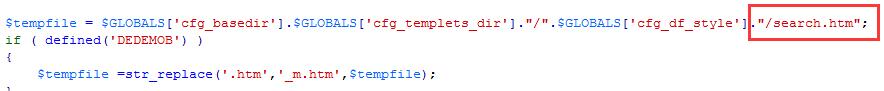 打开该文件,找到.$GLOBALS['cfg_df_style']."/search.htm"; 大概在131行