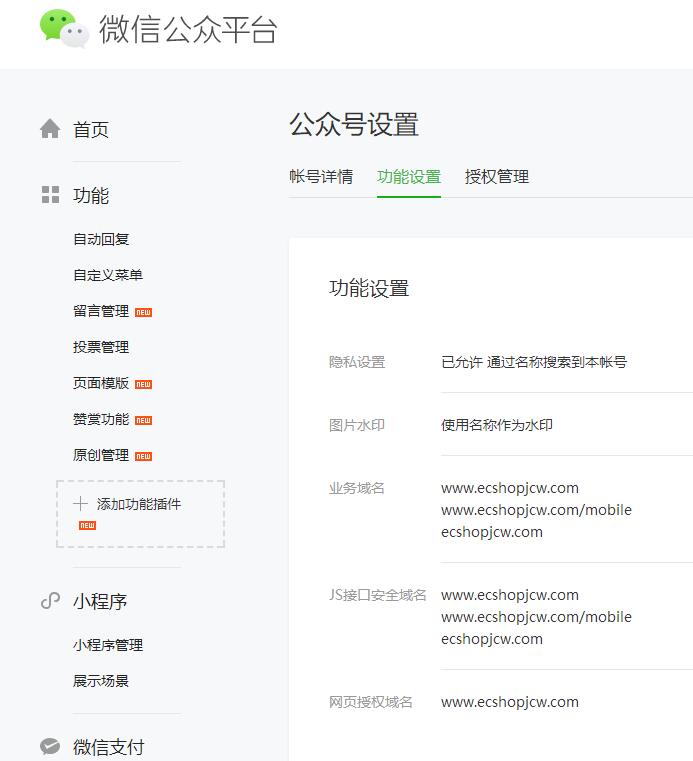 1.找到ECSHOP商城微信设置地方如图: