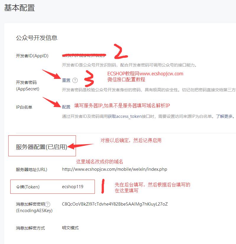 重要说明:要先在后台里面设置好123以后确定,然后在微信公众号里面配置服务器地址URL 设置好以后点启用。