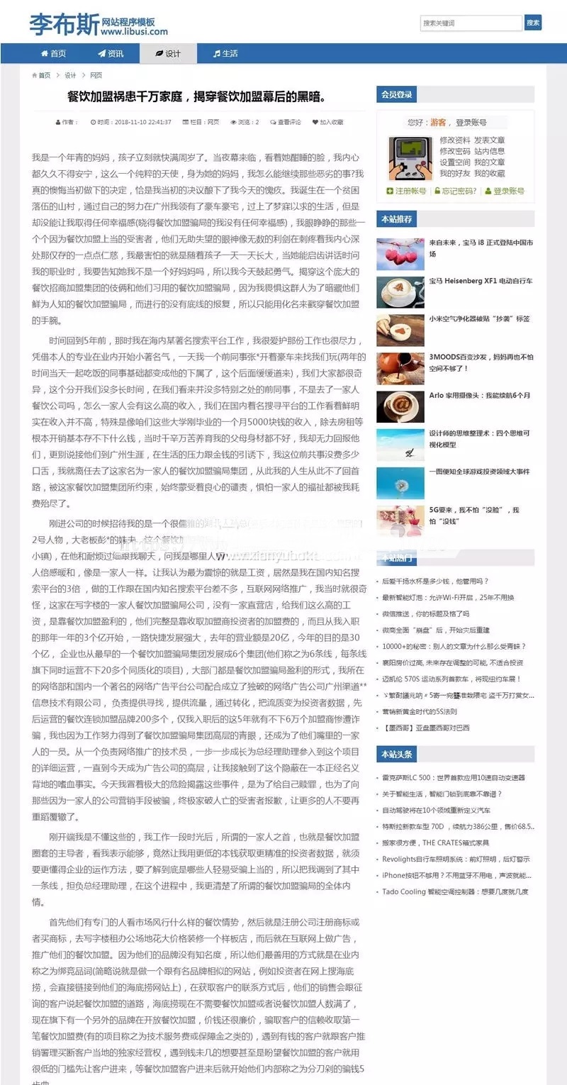 网站程序采用的是帝国CMS 7.5 UTF-8,手机上显示非常漂亮。含10万条左右的文章内容。