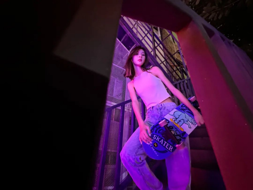 相比于普通夜间人像,自适应闪光灯可以拍出对比度、清晰度更强的照片,在自适应闪光灯的加持下夜间人物会显得更加突出,有一种杂志大片的效果。