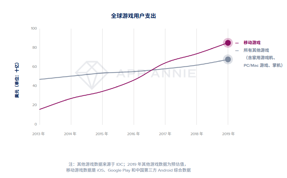 移动游戏份额增加:2019 年全球游戏市场中,移动游戏的市场份额达到 56%。预计2020 年全球移动游戏用户支出将突破 1000 亿美元 。腾讯的《王者荣耀》、索尼的《Fate/Grand Order》和动视暴雪的《糖果传奇》等游戏在移动平台占据主导地位。