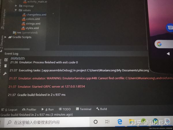 Emulator: emulator: WARNING: EmulatorService.cpp:448: Cannot find certfile: C:\Users\Sawye.android\emulator-grpc.cer security will be disabled. 目前搜遍全网没有解决方法!!!!