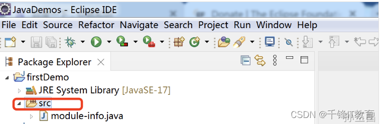 这样,我们在Eclipse中就创建了第一个Java项目,我们的Java类需要在src目录下进行创建。