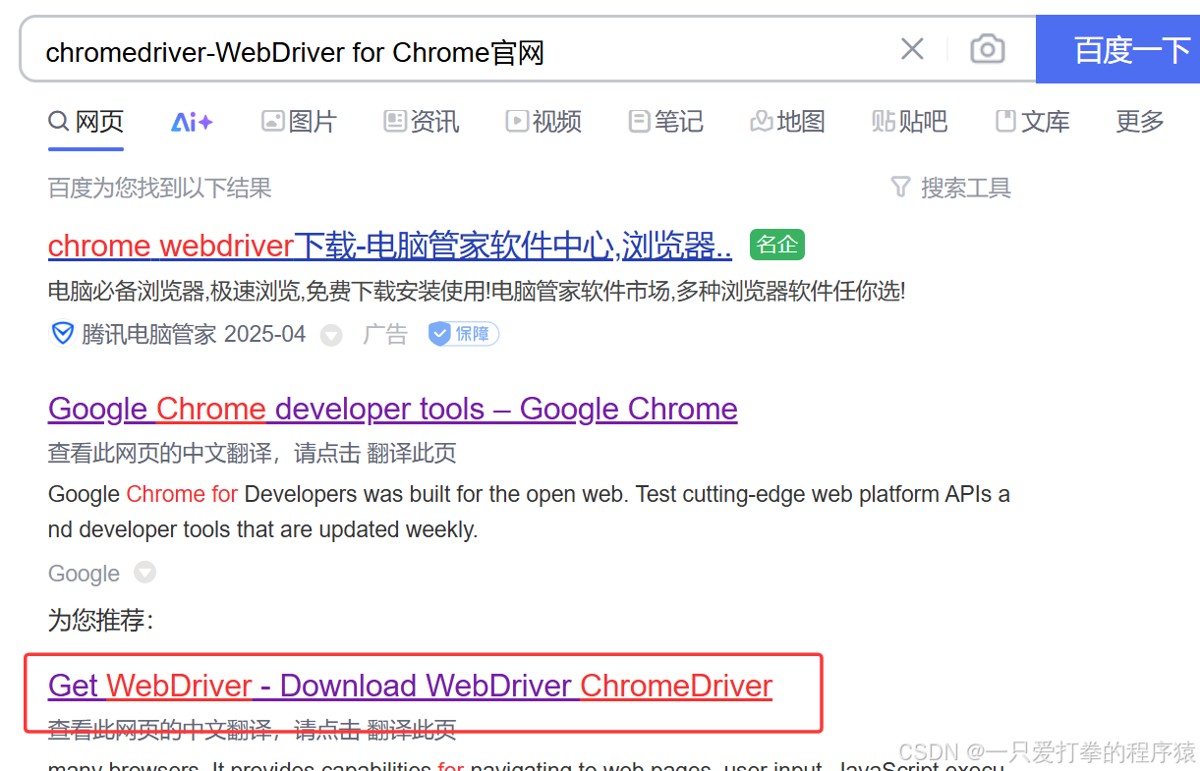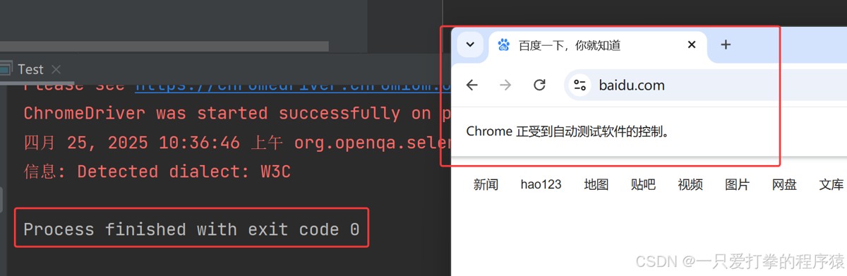 运行代码后自动跳出百度网页则代表成功,"---remote-allow-origins=*" 为允许所有版本。 2.9 出现错误解决方案