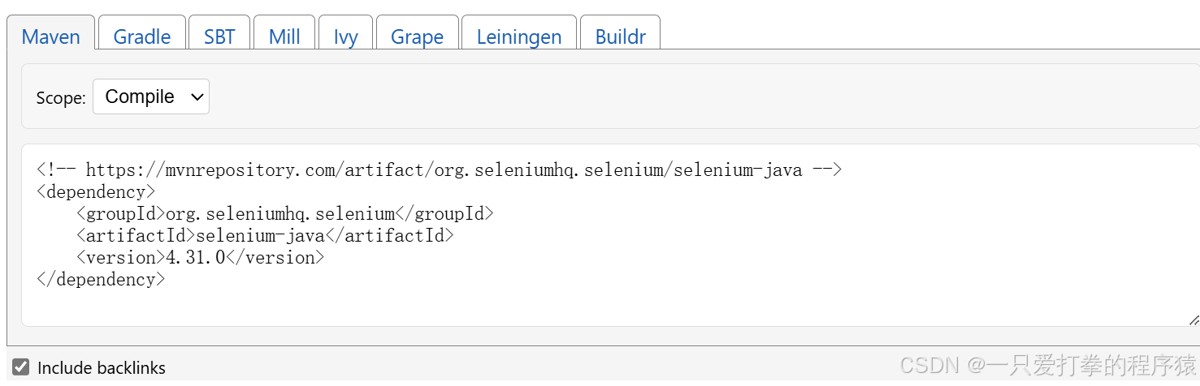 找到你想下载的版本,并复制。 2.7 添加依赖到idea粘贴至 idea 中 pom.xml 里,刷新 maven 。 2.8 测试环境是否搭建成功