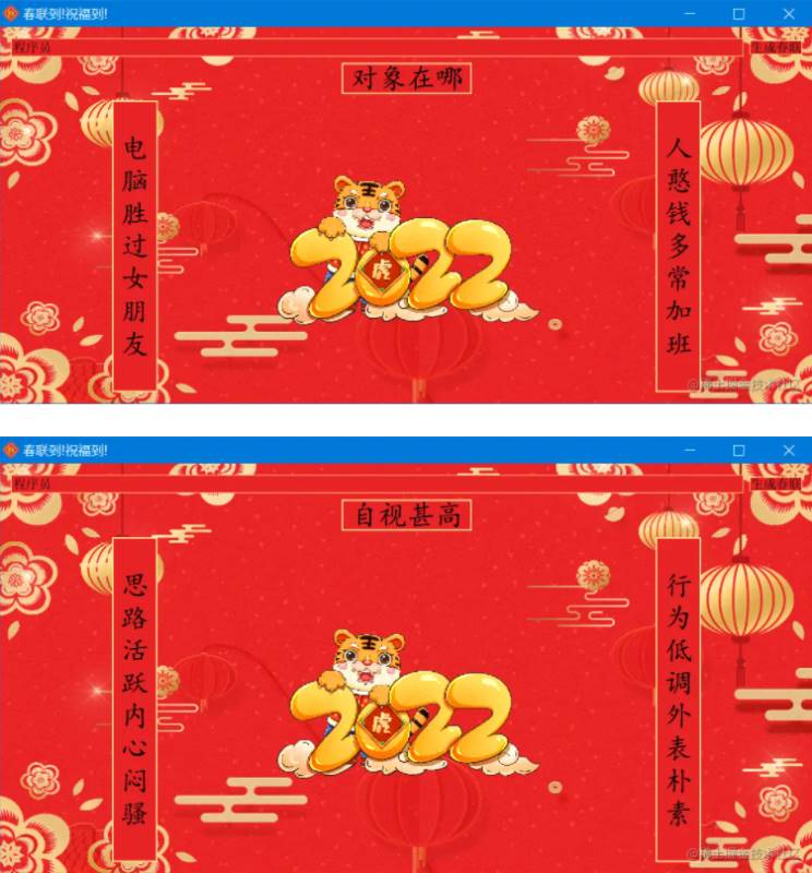 反馈的数据: "{"couplets":{"center":"万象皆春","first":"龙年龙舞千秋业","second":"蛇岁蛇腾万里春"},"log_id":1484407725829006888}"