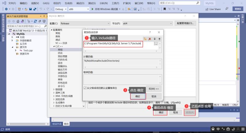 1.3 添加 include目录我的这个路径是:C:\Program Files\MySQL\MySQL Server 5.7\include