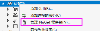 手点路径:右键你需要引入包的项目的依赖项 → 管理NuGet程序包 → 浏览里面输入 MySql.Data