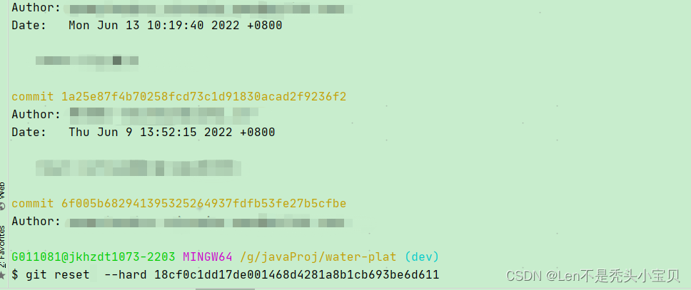 git还原到某次commit并强制推送远程 不可逆提交 一、reset 1.git log查看提交记录 1 git log 2.选择某次提交的commit ID,ctrl+c复制提交ID 补充:按q退出日志到输入模式 3.使用git reset hard 还原到某