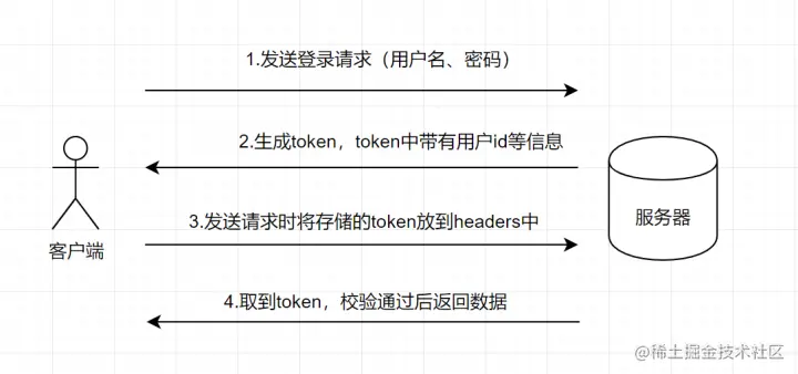 token 是如何生成的: 前面我们说 cookie 是服务端设置了 set-cookie 响应头之后,浏览器会自动保存 cookie,然后下一次发送请求的时候会自动把 cookie 携带上。但是我们说 cookie 算是一种民间的实现方式,所以说浏览器自然不会对它进行成么处理。token 主要是由服务器生成,然后返回给客户端,客户端手动把 token 存下来,比如利用 localstorage 或者直接存到 cookie 当中也行。 token 认证流程: