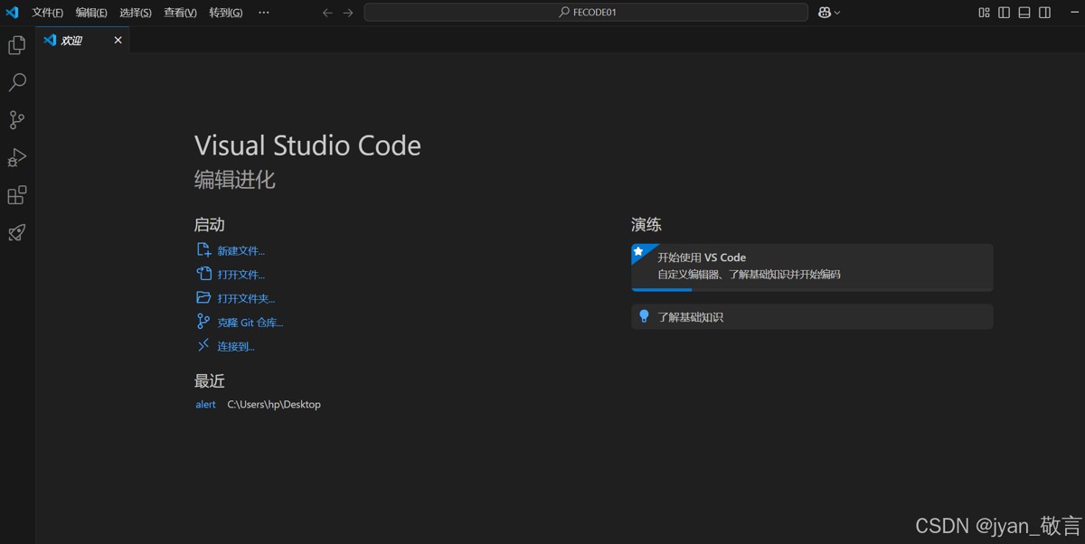 根据指引进行安装即可(可以改变安装路径) 二、汉化双击打开vscode,进入以下界面: