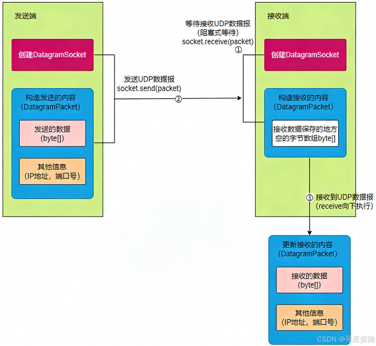 在 Java 环境中,UDP 编程主要依靠两个核心类:DatagramSocket 和 DatagramPacket。