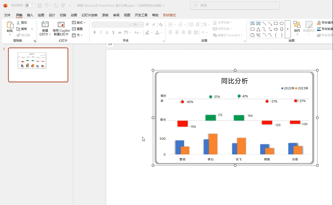 五、 放映到此为止就设置完毕了,我们只要按下F5键,全屏显示PPT就可以在放映的过程中,通过点击控件,来让图表实现动态的变动,通过这个特性,也可以在PPT中实现类型数据看板的效果,大家有兴趣的可以试一下。