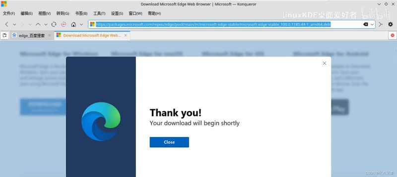 (1)先下载edge,首先使用火狐(也可以安装kde里的 konqueror 浏览器,只需在终端使用root权限执行命令: apt install konqueror -y )到微软官方网站,选择第一个(deb格式的)即可。