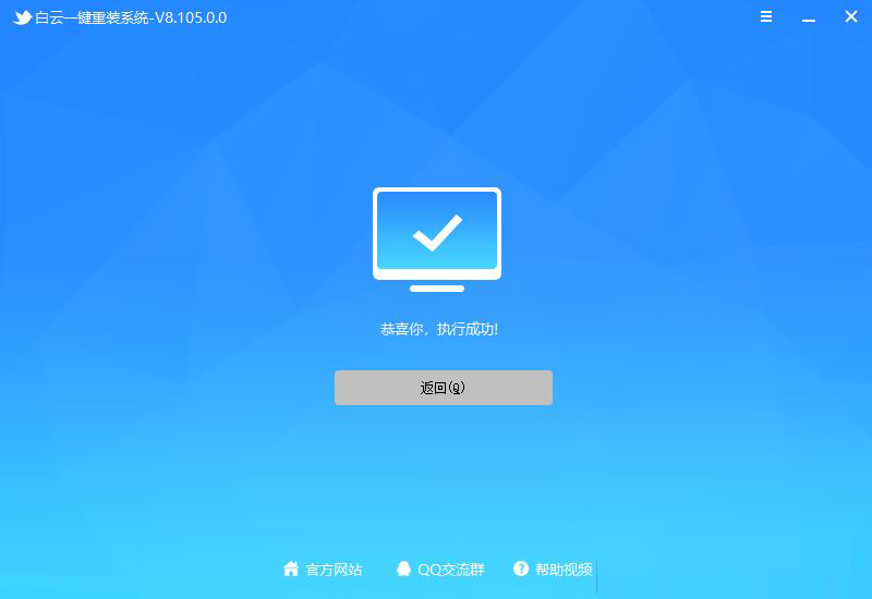 2、下载完成之后,打开【白云一键重装系统工具】; 白云一键重装系统是款可以简单方便的安装Windows XP/7/8/10/11系统,同时完美兼容市面所有主板,并且支持GPT-UEFI一键装机的重装系统工具,这个软件主要有重装系统(纯净系统/原版系统),U盘启动(U盘模式/本地模式),备份还原(还原系统/备份系统)和常用软件功能。