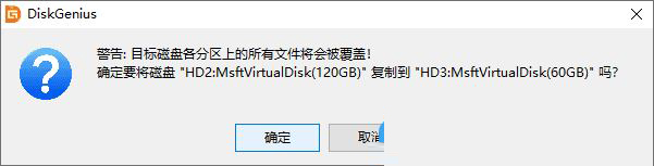 10、程序将显示下面的警告提示,目标磁盘上各分区及所有文件将会被覆盖,请确认目标盘上没有重要数据,或重要数据已做好备份。确认无误后,点击【确定】按钮;