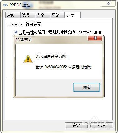 无法启用共享访问,错误0x80004005,报错的解决办法 很多人在win7发射wifi 的时候,会遇到以下报错:无法启用共享访问,错误0x80004005,