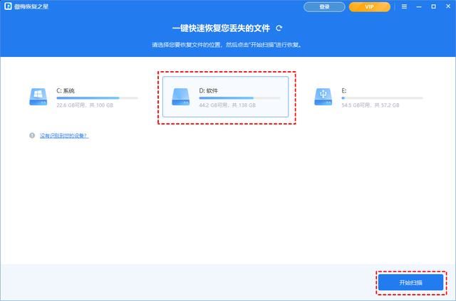 步骤1. 在你的电脑上下载安装运行傲梅恢复之星,识别到磁盘后,选择U盘,然后单击“开始扫描”。