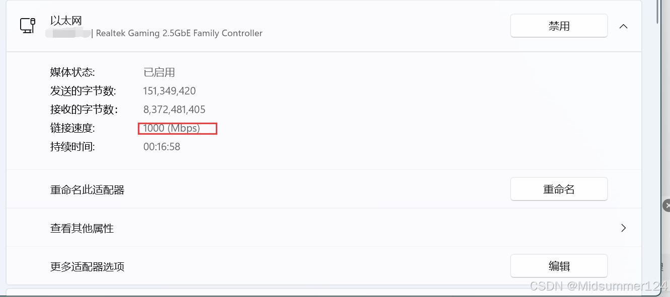 这里就调好了 2.恶性bug问题 若你多次就刚刚方案更改网速,网速还是会马上跳回100Mbps,试试下面方法,总归管用。 多次插拔网线更改其他网线禁用该网卡再启用重启路由器,如果还不行的话就没有办法了 |