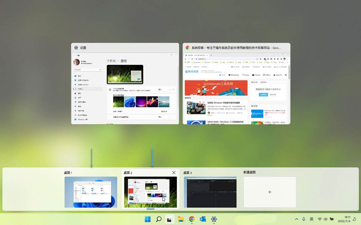 当你的工作量超出一个(甚至两个)屏幕的容量时,可以使用 Windows 11 中的「虚拟桌面」在不同的工作或娱乐模式之间快速切换。