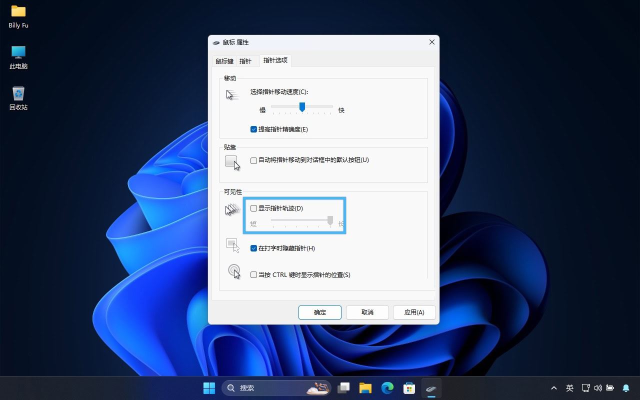 关闭非活动窗口滚动功能 07. 关闭鼠标指针轨迹鼠标的指针尾迹功能可以增强指针的可视性,但有时可能会导致性能问题或鼠标移动异常。如果你想禁用该功能,请按照以下步骤操作: 1、按Windows + R快捷键打开「运行」对话框,执行main.cpl打开「鼠标 属性」窗口。 2、切换到「指针选项」标签页,取消勾选「显示指针轨迹」,然后点击「确定」关闭窗口。