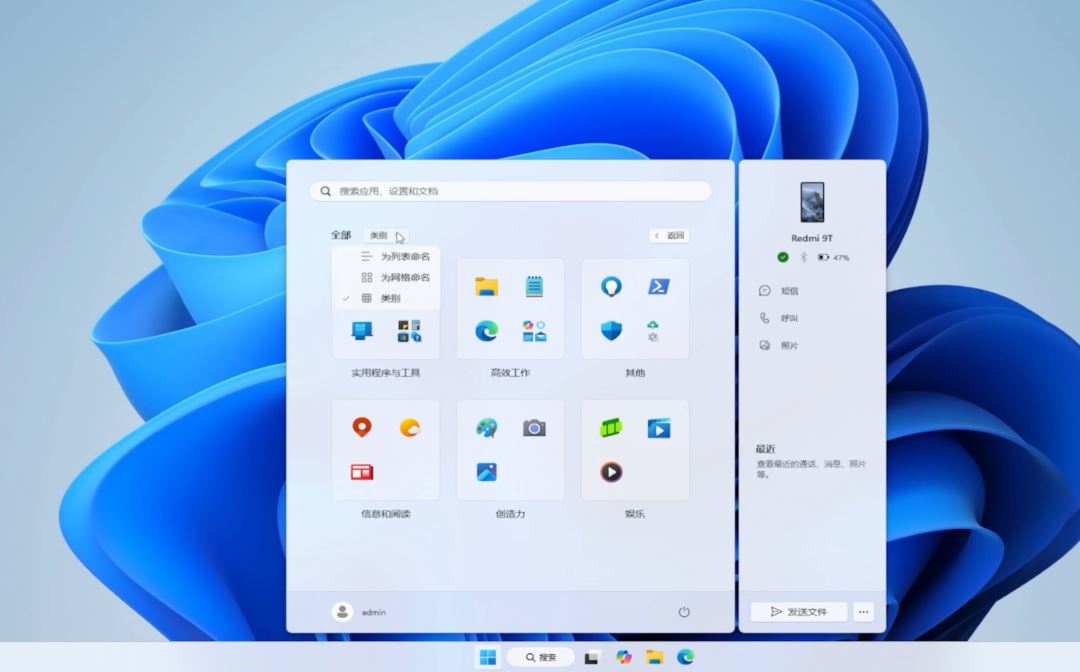 比如开始菜单界面调整,优化应用整合,类似文件夹,以及分享功能,并且为手机单独设置窗口,操作更便捷。