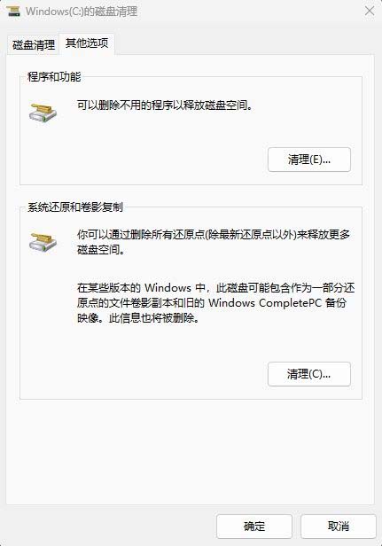 该工具的高级选项中还包含删除系统还原点与卷影副本的功能,但微软不建议用户随意操作,除非有明确的特殊需求。
