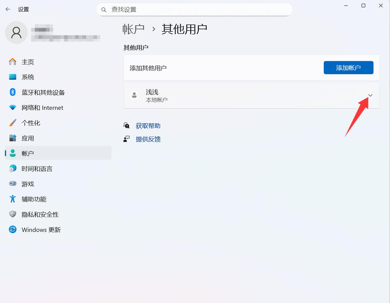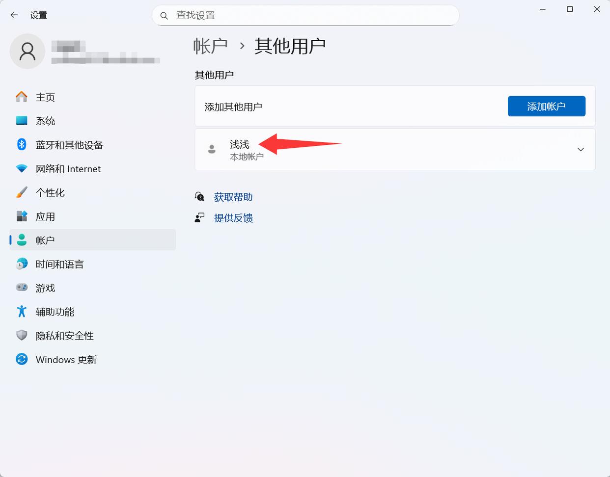创建完成后,新设置的本地帐户会显示在【其他用户】列表中。