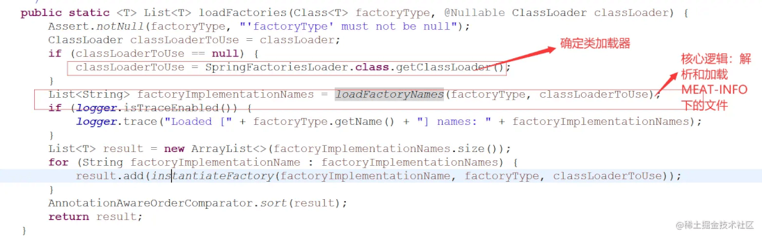 那么spring是如何通过加载spring.factories来实现SpI的呢?我们可以通过源码来进一步分析。 源码分析